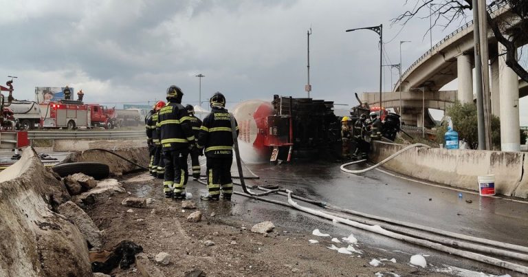 Investigan si un bache provocó la volcadura de pipa en Iztapalapa