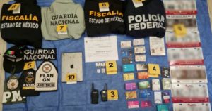 Durante la revisión del lugar, las fuerzas de seguridad aseguraron más de una decena de objetos vinculados con actividades ilícitas: equipos de radiocomunicación, placas de circulación, una caja con identificaciones oficiales, insignias de distintas corporaciones —incluidas la Guardia Nacional, la SEDENA, la Policía Ministerial y la Fiscalía capitalina— además de prendas con logotipos de instituciones federales y estatales.