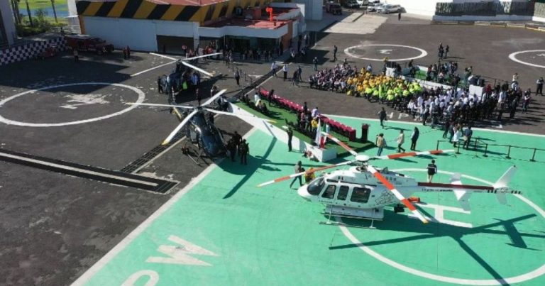 Alejandro Armenta rehabilita hangar estatal y vuelve a volar en helicóptero