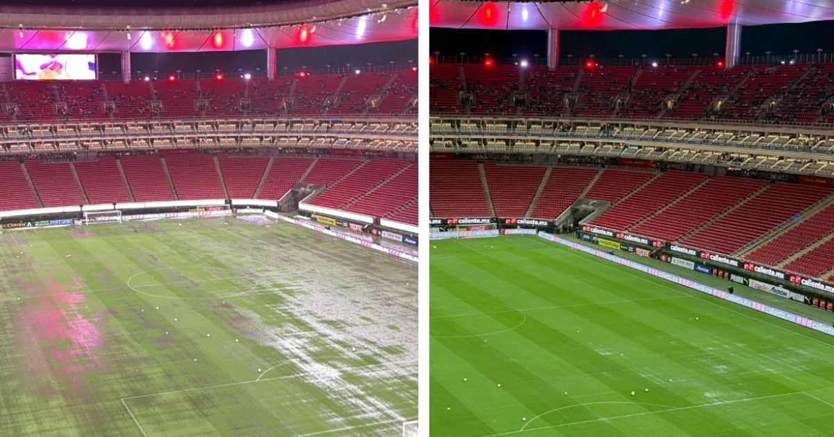 Los charcos prácticamente estaban en todo el campo, tomando en cuenta la cantidad del líquido. El Estadio Guadalajara, nombre que adoptará durante el Mundial, era observado con lupa para resolver la situación, que además estaba afectado en la zona donde sale la prensa hacia el campo y los vestidores, sin embargo, a la hora del pitazo inicial, la cancha no tenía ni un solo charco.