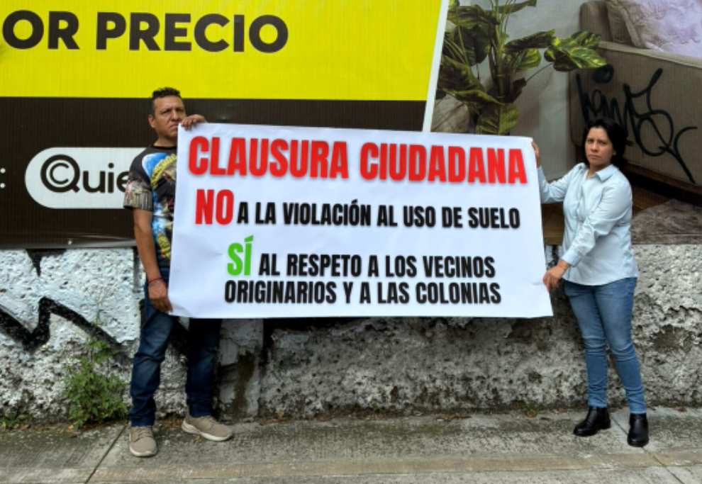 En protesta contra la construcción en Camarones 134, que ya provocó daños a inmuebles; fueron respaldados por la diputada local del PAN, Laura Álvarez