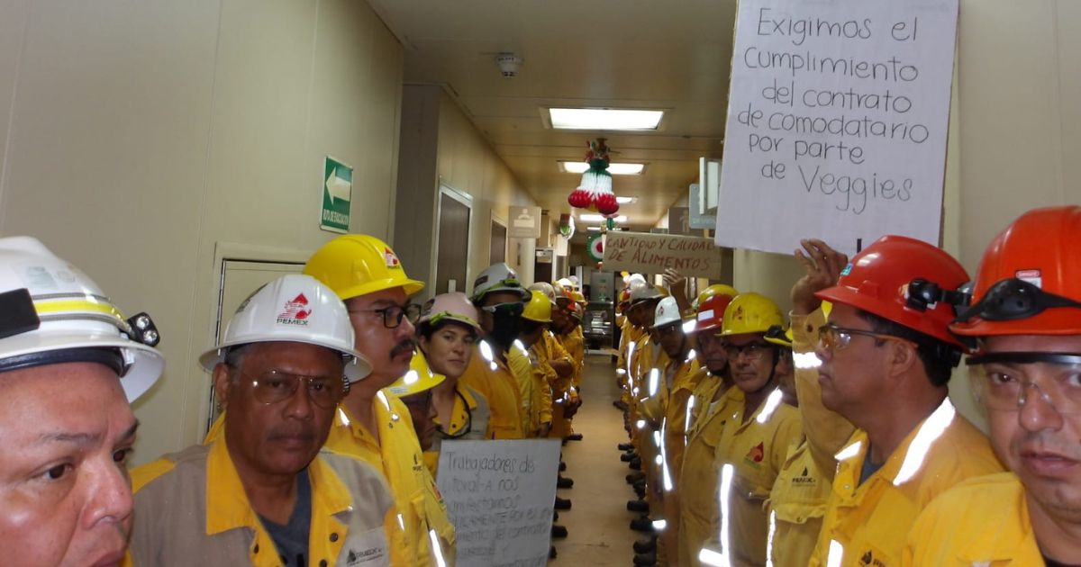 Al respecto, los trabajadores afectados señalan que una de las empresas responsables es Veggies Health de México por no cumplir con lo acordado. En una consulta vía transparencia a los contratos vigentes de la petrolera, desde julio de 2022, Pemex encargó a la compañía señalada “Servicios integrales de hotelería y alimentación a bordo de plataformas habitacionales en la sonda de Campeche y Golfo de México”, por un monto total de 258 millones 798 mil pesos en servicio válidos hasta diciembre de 2027.