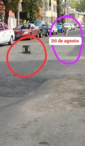 Mientras ocurre esta presunta discriminación atribuida al apoyo de Mejía a Saldaña, la colonia está afectada por las problemáticas anteriormente mencionadas, y una de las que más le preocupa a la entrevistada, son dos grandes socavones que desde el 26 de agosto existen en Norte 71, entre Biólogo y Poniente 54.