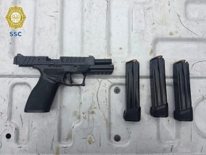 Con ayuda de elementos de la Policía Bancaria e Industrial, personal de la SSC lo detuvo para realizarle una revisión de seguridad, en la cual le aseguraron un arma de fuego corta con 28 cartuchos útiles y tres cargadores, así como una credencial vigente que lo identificaba como miembro de una dependencia militar federal.