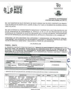 La administración que encabeza Rojo de la Vega, comprometió 12 millones 999 mil 770.60 pesos para que la empresa Eyetech Solutions S.A. de C.V., se encargue del “servicio de mantenimiento preventivo y correctivo para los sistemas tecnológicos de videovigilancia en la vía pública de la alcaldía, y actualización del equipamiento tecnológico perteneciente al centro de monitoreo de la alcaldía Cuauhtémoc”, según consta en la versión pública del contrato AC/CPS/024/2025.