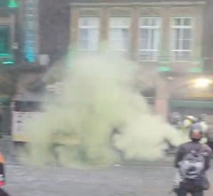Escudos de plástico contra el concreto, gritos ahogados por el humo de las bombas molotov que estallaban por encima de los policías y el gas lacrimógeno que servía para intentar disuadir a los manifestantes, eso quedó en un intento.
