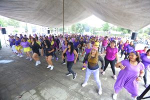 Más de 200 personas participaron en el Bailatón Fitness realizado en la explanada municipal y convocado por el DIF Ecatepec, para promover la recreación y el deporte, además de apoyar al Centro Autismo Teletón (CAT) ubicado en el municipio, que atiende cada año a alrededor de 400 niñas y niños.