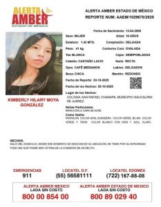 Colectivos feministas marcharán este lunes en Naucalpan para exigir la aparición con vida de Kimberly Hilary Moya, adolescente desaparecida desde el 2 de octubre