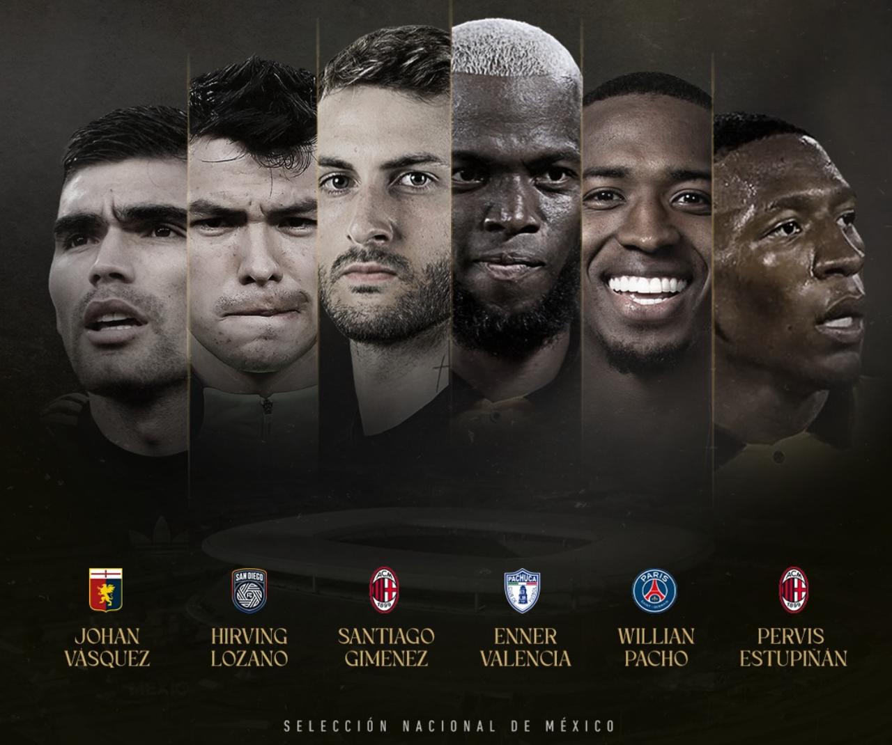 Por el cuadro mexicano, Carlos Acevedo sería el titular en el arco, César Montes y Mateo Chávez como los centrales. Orbelín Pineda, Diego Lainez y Carlos Rodríguez conducen desde el mediocampo. Santiago Giménez es el estelar en ataque, con Alexis Vega e Hirving Lozano como alternativas.