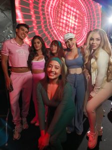 Desde muy temprano empezó a llegar el elenco base del clip de “Alo”, en su mayoría chicas guapas que, dentro de la historia, están haciendo ejercicio arriba de unas bicicletas. Como era de esperarse, el equipo técnico aprovechó para sacar lo mejor de los famosos a través las cámaras. Se hicieron tomas por doquier dentro del antro. Abelito, la estrella del clip, tuvo el papel de instructor de las chicas que morían de calor al hacer tanto cardio. “Es un tema para las morritas fitness”, dijo Bogueto, quien hizo varios cambios de ropa.