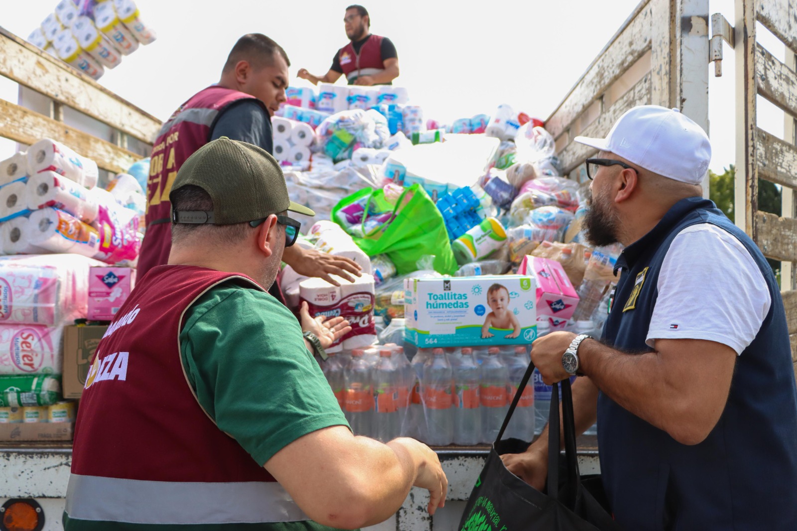 El alcalde destacó que los víveres que serán entregados en las comunidades más afectadas de Veracruz, fueron recolectados en los centros de acopio del municipio. Detalló que entre estos artículos hay: agua embotellada, leche en polvo, pañales, toallas femeninas, papel higiénico, alimentos enlatados, productos de limpieza y productos de higiene personal.