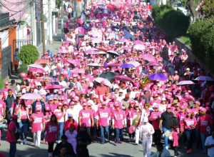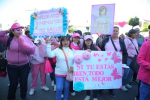 Con playeras y gorras color rosa, más de 3 mil mujeres y hombres participaron en la Caminata Estatal de Prevención del Cáncer de Mama en Ecatepec, presidido por la alcaldesa Azucena Cisneros Coss, quien estuvo acompañada por la secretaria de Salud, Macarena Montoya Olvera, a fin de visibilizar y concientizar a la población de este mal, principal causa de muerte entre tumores malignos.