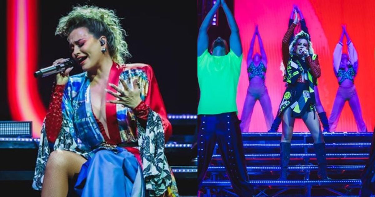 La cantante se mostró feliz, bajo del escenario, le cantó a su público.