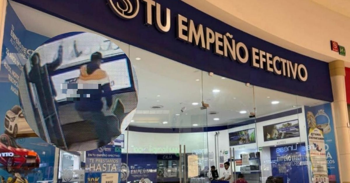 La inseguridad volvió a exhibir su fuerza en Toluca. Este fin de semana, dos hombres armados irrumpieron en la casa de empeño Tu Empeño Efectivo, ubicada al interior de Plaza Sendero, y despojaron al personal de dinero y joyas sin que los guardias privados hicieran algo por detenerlos.