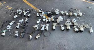 Utilizando grúas, escaleras telescópicas y herramientas especializadas, los técnicos retiraron cámaras colocadas en postes de alumbrado, azoteas, avenidas principales e incluso sobre el campanario de una iglesia.
