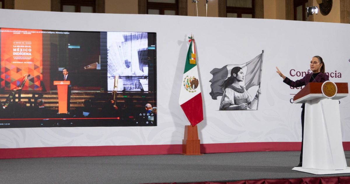 Durante su intervención, Sheinbaum leyó el prólogo de la muestra, en el cual subraya que “la Conquista no fue un encuentro entre iguales, sino un proceso brutal de violencia, imposición y despojo”. En su texto, la mandataria destaca el papel de las mujeres indígenas como guardianas de la memoria y la resistencia: “Fueron silenciadas, desplazadas, violentadas. Sin embargo, resistieron en silencio y en acción, en el telar y en la palabra, en el rito y en la comunidad”.