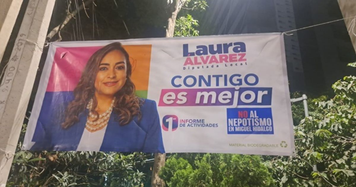 Ciudad de México.- La alcaldía Miguel Hidalgo amaneció convertida en un campo de protesta silenciosa. Cientos de vecinas y vecinos organizados cubrieron durante la noche la propaganda de la diputada panista Laura Álvarez Soto con calcomanías que gritan lo que muchos ya no toleran: “No al nepotismo en Miguel Hidalgo”.