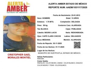 El municipio de Hueypoxtla vive días de angustia tras la desaparición de Christopher Gael Morales Montiel, un adolescente de apenas 13 años cuyo rastro se perdió el pasado 1 de noviembre.