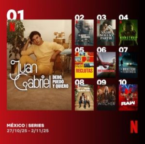 Según las estadísticas se coloca con 1.8 millones de visualizaciones en 1 semana, Juan Gabriel se posiciona en el top 10 global de series de Netflix en México a una semana de su estreno.