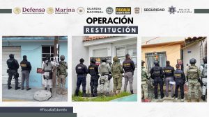 Operación “Restitución” forma parte de la “Estrategia para la Restitución de la Propiedad”, impulsada desde la Mesa de Coordinación para la Construcción de la Paz, que en la entidad encabeza la Gobernadora Delfina Gómez Álvarez, en la que participan la DEFENSA, MARINA, GN, así como del Gobierno del Estado de México a través de la SSEM.