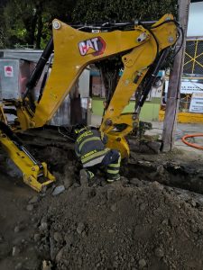 Fueron comerciantes aledaños y vecinos de la Colonia Anáhuac quienes reportaron a los servicios de emergencia un fuerte olor al combustible y por fortuna llegaron a tiempo para acordonar el área de la excavación.