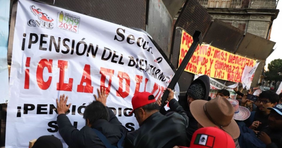 Ciudad de México.- El amanecer de este jueves sorprendió a Palacio Nacional rodeado de tensión. Afuera, grupos de maestros de la CNTE empujaban las vallas metálicas con el intento de ingresar por la calle de Moneda. Entre consignas y empellones, burlaron uno de los perímetros de seguridad, pero fueron contenidos antes de llegar al acceso principal. Los granaderos no aparecieron; fueron las vallas y la prudencia las que evitaron que la protesta escalara.