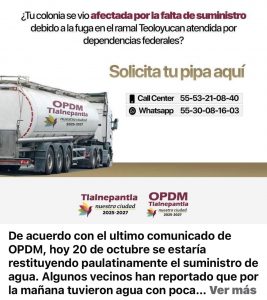 Otros manifiestan una desconfianza arraigada hacia los operativos de apoyo. “Dicen que habrá pipas, pero la realidad es que no llegan cuando se necesitan. Para conseguir una hay que esperar horas. Eso no es un plan de contingencia”, reprocha Rodrigo, vecino de Siglo XXI.