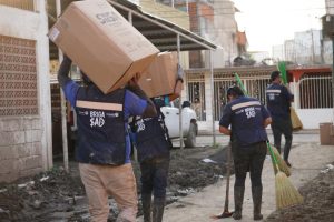 Desde temprano, los jóvenes recorrieron el fraccionamiento La Floresta, donde limpiaron más de 30 viviendas que permanecían cubiertas por el lodo y los residuos arrastrados por la corriente. Cada hogar atendido significó un alivio tangible para familias que, apenas unos días atrás, lo habían perdido casi todo. Las labores continuarán en los próximos días, pues aún quedan decenas de casas en situación crítica.
