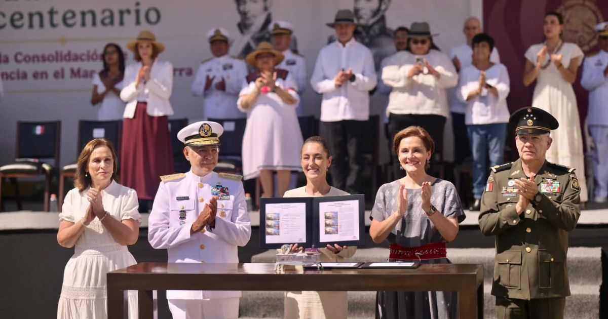 Al evento asistieron integrantes del gabinete federal, las presidentas de la Cámara de Diputados y del Senado, así como el presidente de la Suprema Corte de Justicia de la Nación (SCJN). Rindieron honores a la bandera. Como parte del acto, la presidenta tomó varios sellos y canceló el timbre postal conmemorativo de los 200 años de soberanía marítima con la presencia de Raymundo Morales, almirante y secretario de la Semar, Ricardo Trevilla, general y secretario de la Defensa Nacional (Sedena) y Rocío Nahle, gobernadora de Veracruz.