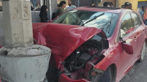 El vehículo se fue directo contra un muro de contención, y terminó proyectado hacia el hueco que da al área peatonal, cayendo aproximadamente cinco metros de altura hasta estrellarse en la explanada central.