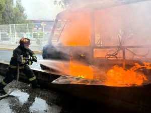 Una unidad de transporte público de la ruta 26 fue consumida por las llamas en Tlalnepantla; el siniestro se habría iniciado por un cortocircuito, lo que generó que el vehículo fuera arrasado por el fuego y quedara en cenizas.