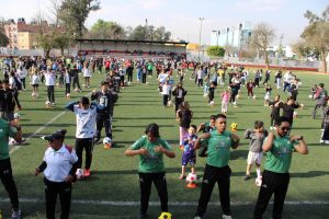 La Alcaldía Iztacalco realizó una clase masiva de fútbol con niñas, niños y jóvenes de la demarcación como parte de las actividades rumbo a la clase de fútbol más grande del mundo, programada para el próximo 22 de febrero de 2026.