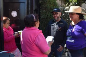 - La Oleada Violeta recorrió las calles del Pueblo de San Nicolás Totolapan con brigadas del Gobierno Federal, Ciudad de México y local, para informar a la población sobre las acciones de prevención, atención y acompañamiento a mujeres en situación de violencia.