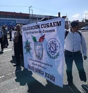 Sin armas, pero con pancartas que revelaban su inconformidad, más de treinta integrantes del CUSAEM interrumpieron el tránsito para acusar al Estado de prácticas que califican como abusivas y contrarias a su labor.