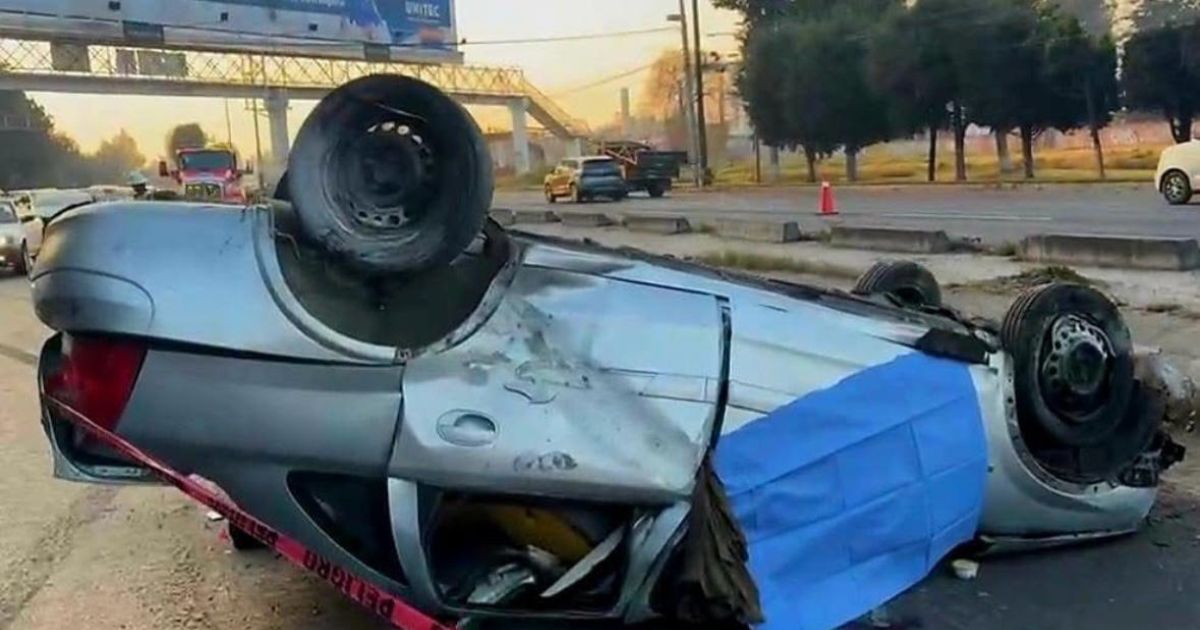 Un vehículo Volkswagen Jetta gris, que se aproximaba a gran velocidad hacia Toluca, no logró frenar a tiempo ante el operativo. El automóvil chocó de lleno contra la motocicleta siniestrada y el cuerpo del motociclista, lo que provocó que volcara y quedara con las llantas hacia arriba. El conductor murió en el acto.