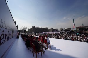 Ciudad de México.- En el séptimo aniversario de la llegada de la Cuarta Transformación, la presidenta Claudia Sheinbaum encabezó un acto multitudinario en el Zócalo capitalino que se convirtió en una demostración de fuerza política y cohesión interna del movimiento. Ante una plancha llena, la mandataria afirmó que la Transformación “llegó para quedarse” y advirtió que las campañas negras “no lograrán debilitar ni al Movimiento ni a la Presidencia”.