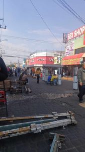 Según los reportes vecinales, el pasado fin de semana se observó una notable reaparición de puestos callejeros en esa zona. Vendedores acomodaron sus mercancías sobre banquetas y la calle, con estructuras temporales y acumulaciones de tubos y productos, según pudo constatarse en imágenes compartidas por habitantes.