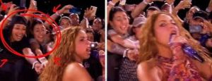 Durante su show el lunes 8 de diciembre en Montevideo, Shakira vivió un momento inesperado y tenso cuando una fan le dio un fuerte jalón de pelo mientras la cantante se acercaba a la valla para saludar al público, el momento se volvió viral ya que mientras interpretaba su éxito “BZRP Music Sessions, Vol. 53” y se inclinaba hacia las primeras filas del Estadio Centenario, una fan extendió la mano, agarró su pelo y la jaló con fuerza.