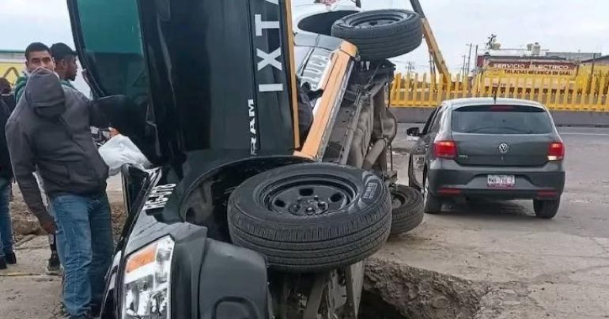 El martes, una excavación abandonada sobre la autopista México–Puebla volvió a cobrar notoriedad, esta vez al tragarse una patrulla de la Policía Municipal de Ixtapaluca.