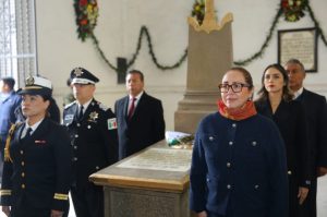 Ecatepec, Méx., a 22 de diciembre de 2025. El gobierno de Ecatepec recordó con una ceremonia y desfile cívico militar el 210 aniversario luctuoso de José María Morelos y Pavón, fusilado y sepultado en este municipio el 22 de diciembre de 1815, donde la alcaldesa Azucena Cisneros Coss expresó su respaldo a la presidenta Claudia Sheinbaum, pues México debe defender sus valores frente a la crisis moral de Estados Unidos.