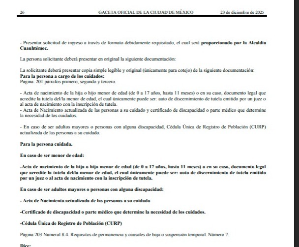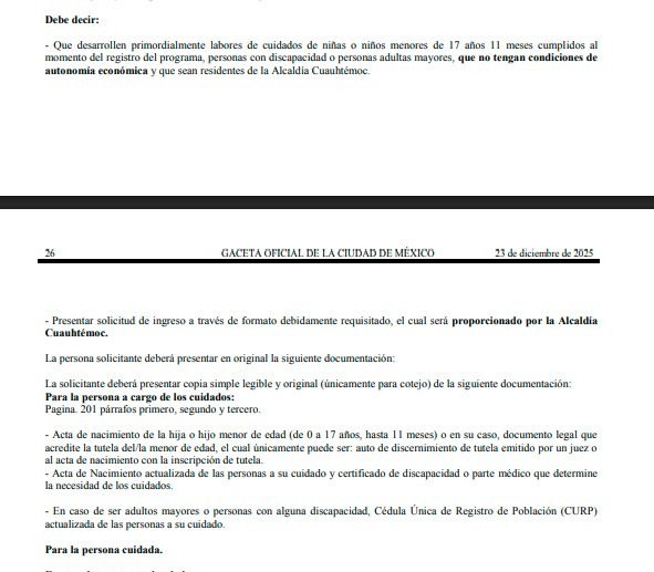 La alcaldía tampoco incluyó que la solicitud de ingreso sería proporcionada por la misma autoridad, ni incluyó el anexo sobre la información de la persona cuidada para comprobar la necesidad del apoyo de la beneficiaria, además de que no precisó como es el proceso para dar de baja una tarjeta por su mal uso.