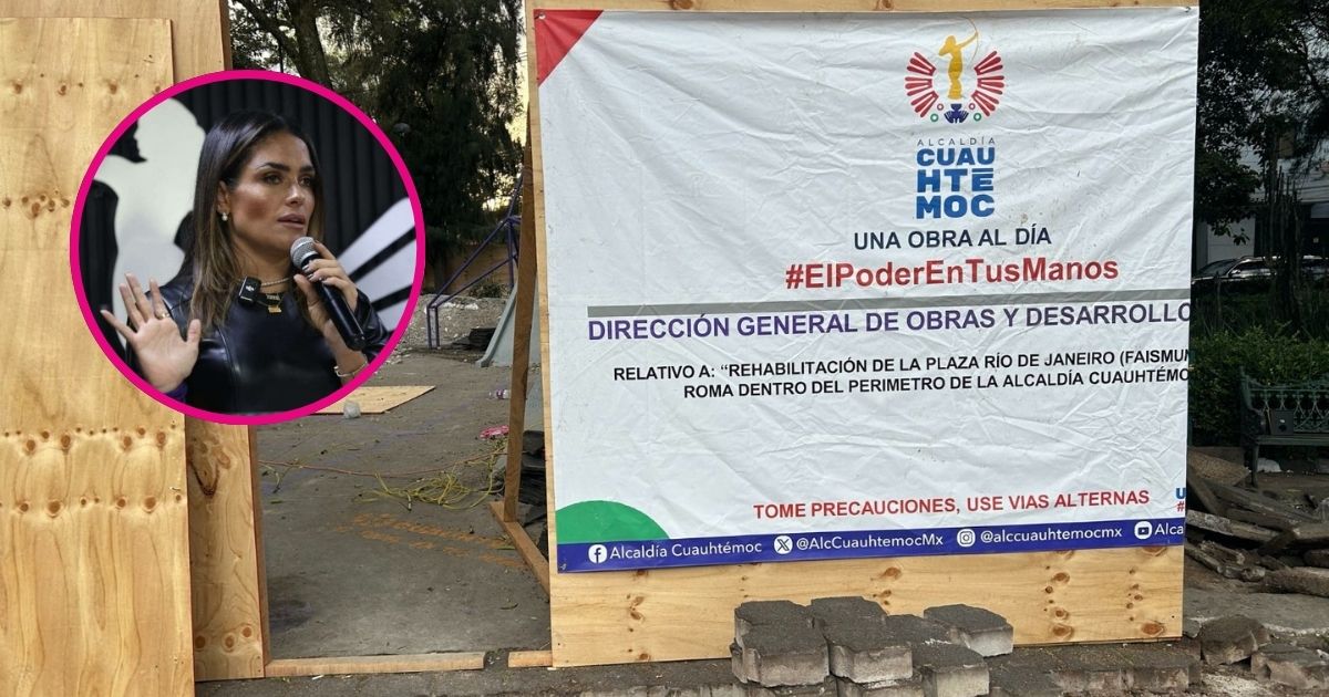 Ciudad de México. – La rehabilitación de la Plaza Río de Janeiro en la Colonia Roma es una de las obras que la alcaldesa de Cuauhtémoc, Alessandra Rojo de la Vega, más ha prometido. Los trabajos iniciaron a finales de año y a pesar de que la edil presumió avances “de calidad”, en el espacio público aún lucen pedazos de adoquín esparcidos y trabajadores que retiran material por accesos intransitables.