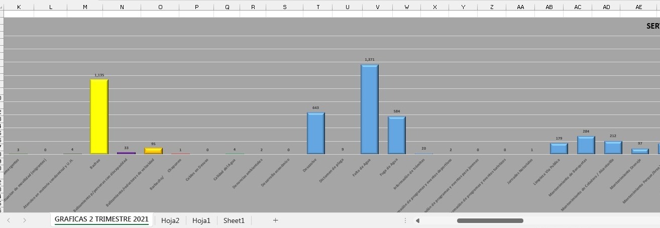 Los registros trimestrales de las solicitudes de atención de la población hacia el gobierno de Núñez Reséndiz indican que los servicios que más reclama la gente son podas y retiros de árbol, falta de agua, mantenimiento al alumbrado y bacheo.
