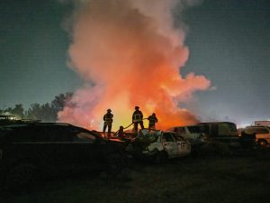 CIUDAD DE MÉXICO. – Un incendio de grandes proporciones se registró en un depósito vehicular a cielo abierto, en la alcaldía Iztapalapa, lo que causó la destrucción de 27 automóviles; afortunadamente no hubo reporte de lesionados ni víctimas mortales.