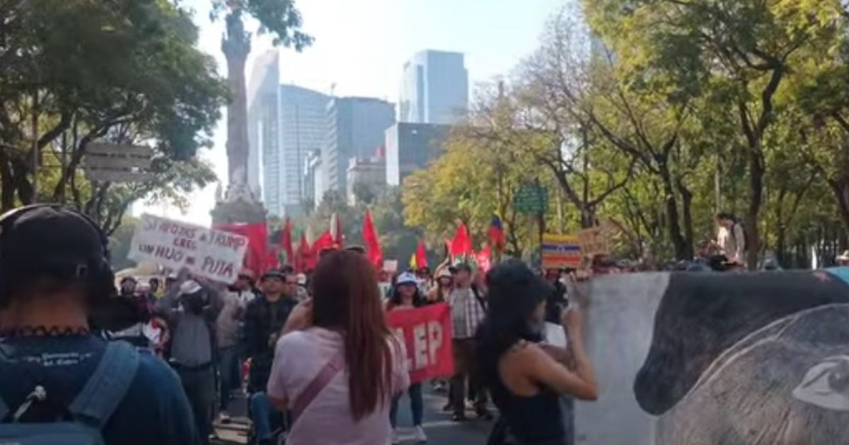 Durante la movilización, que afectó una parte de Avenida Insurgentes, los asistentes portaron banderas de Venezuela y Palestina, así como pancartas con mensajes como “Trump asesino”, “Latinoamérica unida contra el imperialismo” y “El problema en Venezuela se llama imperialismo”. A lo largo de Paseo de la Reforma se escucharon consignas como “Venezuela te queremos, por eso te defendemos”, “No a la guerra, sí a la paz” y “Trump entiende, América Latina no se vende”.