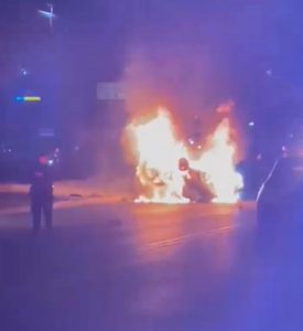 El coche volcó, comenzó a dar varias vueltas sobre el pavimento antes de quedar destrozado y, minutos después, quedó envuelto por las llamas. “Fue espantoso… solo vimos cómo empezó a arder sin piedad”, relató un vecino aún en shock, mientras recordaba el resplandor naranja iluminando la avenida. Las llamas, furiosas, devoraban la carrocería y el calor era tan intenso que obligó a los curiosos a mantenerse a distancia, aunque muchos observaban paralizados por la impresión.