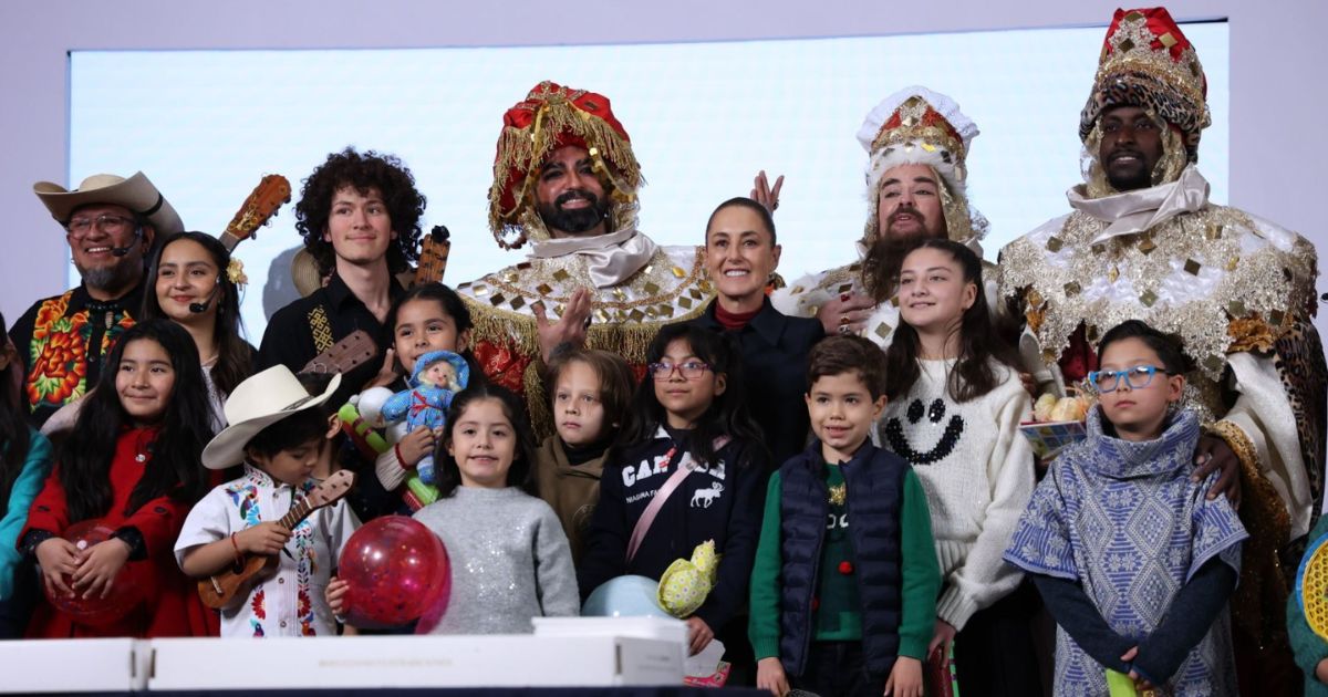 Hubo regalos, risas y, como manda la tradición, Melchor, Gaspar y Baltasar aparecieron para repartir juguetes antes de partir la rosca. Foto del recuerdo incluida. Así, la mañanera cerró distinta: sin prisas, sin regaños y con una presidenta que, por un día, gobernó entre música, risas y migajas de rosca.