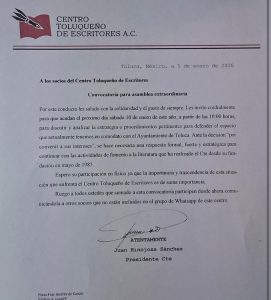 Una decisión administrativa amenaza con sepultar uno de los espacios más significativos para la vida intelectual de Toluca. El gobierno municipal notificó al Centro Toluqueño de Escritores (CTE) que deberá abandonar el inmueble que ocupa desde hace más de 40 años en la Plaza Fray Andrés de Castro, un lugar que ha sido refugio para lectores, escritores, estudiantes y amantes de la palabra escrita. El oficio señala que el convenio “ya no conviene a los intereses” de la autoridad, sin ofrecer mayores explicaciones ni alternativas reales.