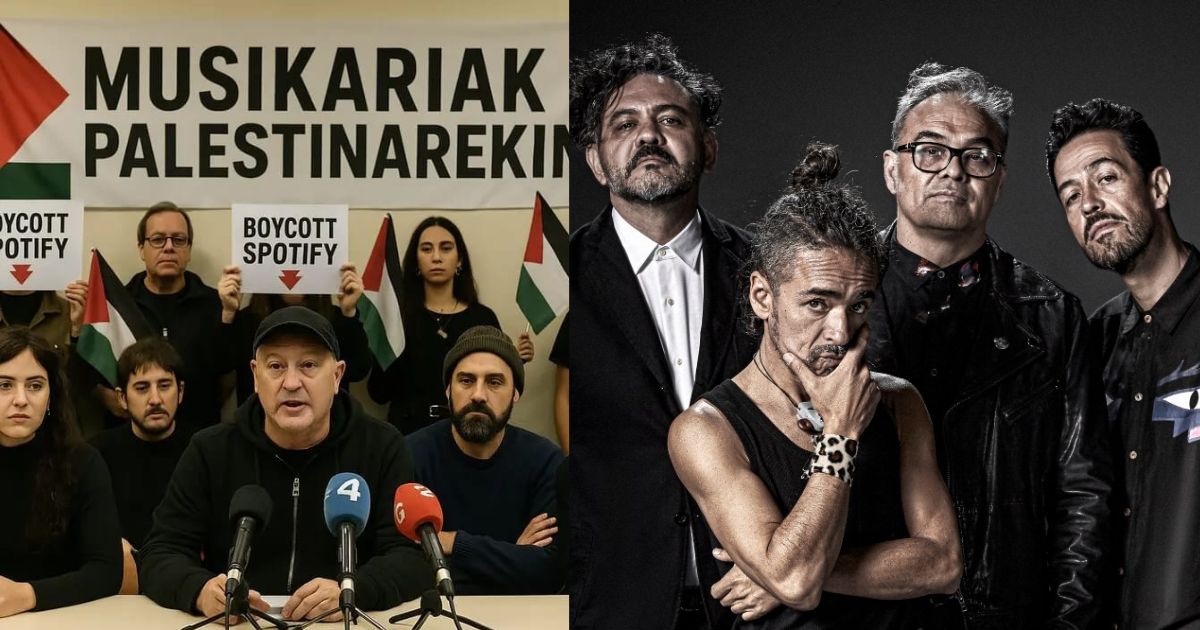 Más de 162 grupos de música de Euskal Herria han anunciado la decisión de eliminar su música de la plataforma Spotify, por la relación de su fundador con el estado Israel y su implicación en el genocidio de Gaza. Los artistas, hasta 650, unidos en el grupo Musikariak Palestinarekin, han comunicado la decisión. Una lista que encabeza, entre otros, Fermin Muguruza, cuyas canciones y las de sus grupos Kortatu o Negu Gorriak desaparecerán de la plataforma digital de música más importante del mundo. También han tomado esta decisión otros artistas como: La banda británica Massive Attack, Amyl and the Sniffers, BADBADNOTGOOD, Black Country New Road, Deefhoof, Fontaines D.C, Grizzly Bear, Japanese Breakfast,Mogwai, Primal Scream, Rina Sawayama, Jockstrap, KeiyaA, John Glacier, Erika de Casier, Smerz, Wednesday, Nourished by Time, Mike o Yaeji and Faye Webster, además de los 162 grupos que han secundado el boicot a Spotify son los siguientes: 112, Abereh, Adrian Perez, Adur, Agara, Aiert, ALBA, Akëer, Amaren Alabak, Aposapo, Argazki bat behelainoan, Audience, Azalera, Bandatze, Bayou La Batre, Bazka, Beta proiektua, Bellum, Birkit, Bierseit, Bi Zaldi, Black Hyō, Blakkat Mentxu, Bloñ, BÑT, Borla, Borrokan, Braulio, Broken Brothers Brass Band, Broken Legacy, Chuleria Joder!, Cuero, Daño Dolor, Dena Eire, El Corazón de Sapo, Emadedei, Erantzun Esanezin, Estricalla, Fermin Muguruza, Forma, Gaizka Insunza, Galder, Ganzúa, Garena, Gatz, Giante, Ginger, Glaukoma, Goma-2, entre muchos mas