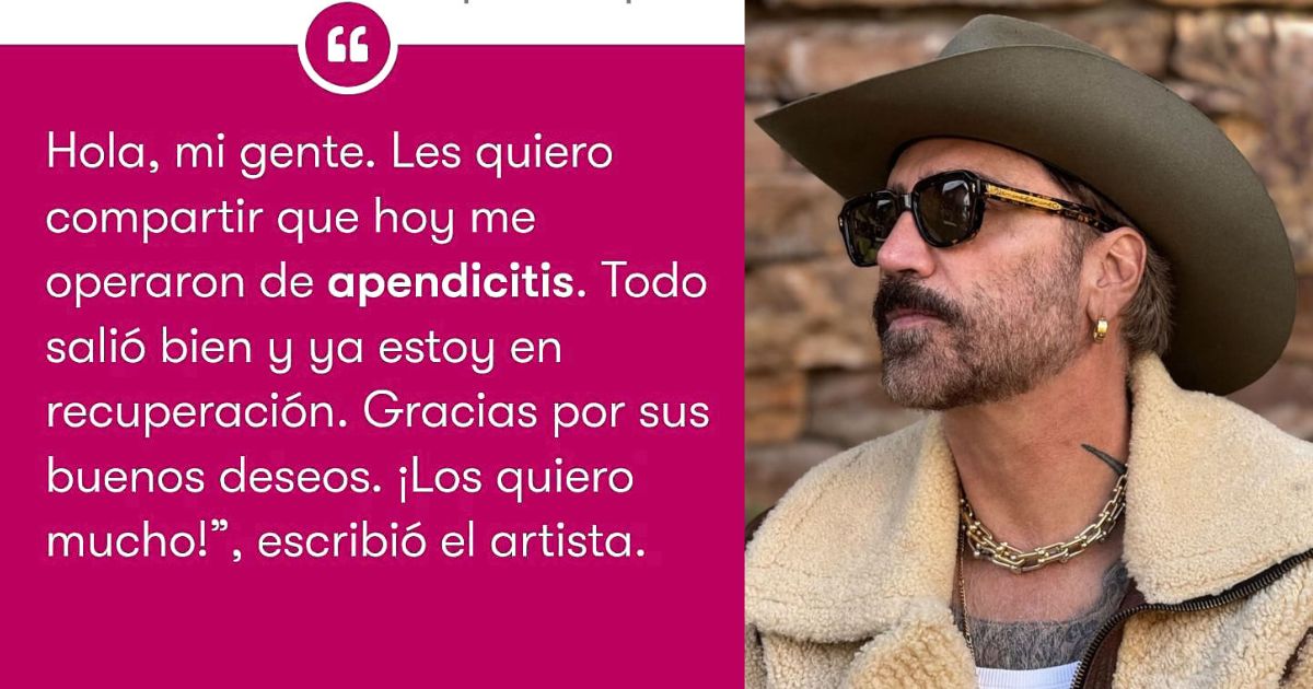 Fue por medio de un breve y directo mensaje en el que el intérprete se sinceró sobre su estado de salud tras haber pasado por el quirófano por problemas de apendicitis, reveló en un corto comunicado de Instagram. De acuerdo con los breves detalles revelados hasta ahora, ya se encuentra en recuperación